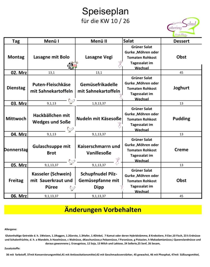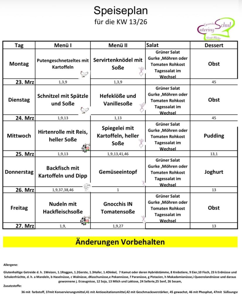 Speiseplan März
